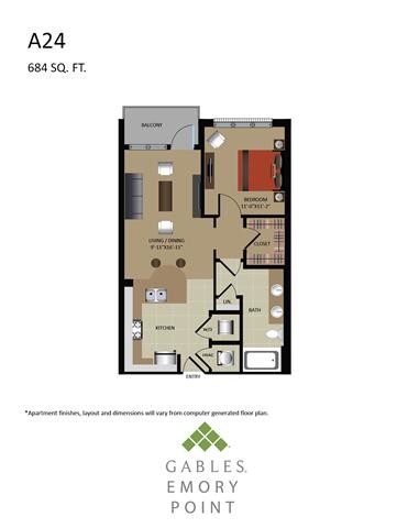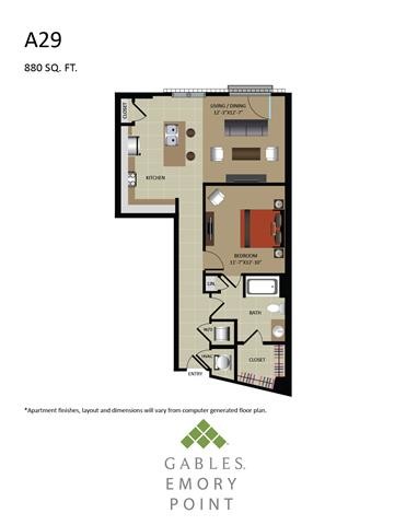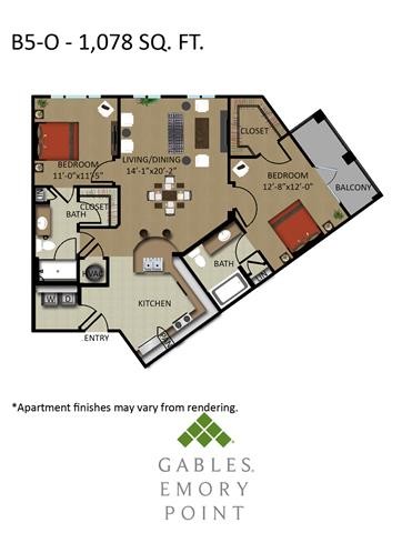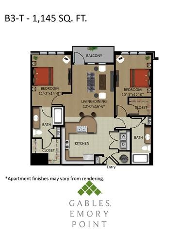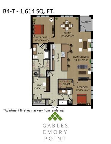 According to our records, monthly rent at Gables Emory Point is between $1430 - $3021/month.